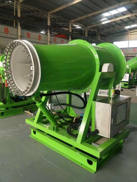 The principle of the fog cannon machine is to send water to the end of multiple spray ports through the pipeline system,using high-pressure wind turbines, make the water in the form of mist,spraying far away,a large number of airborne the misty water droplets bring various pollutants in the range to the ground, thus achieving the effect of dust reduction and dust removal.